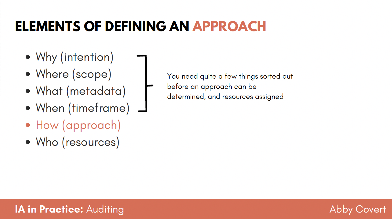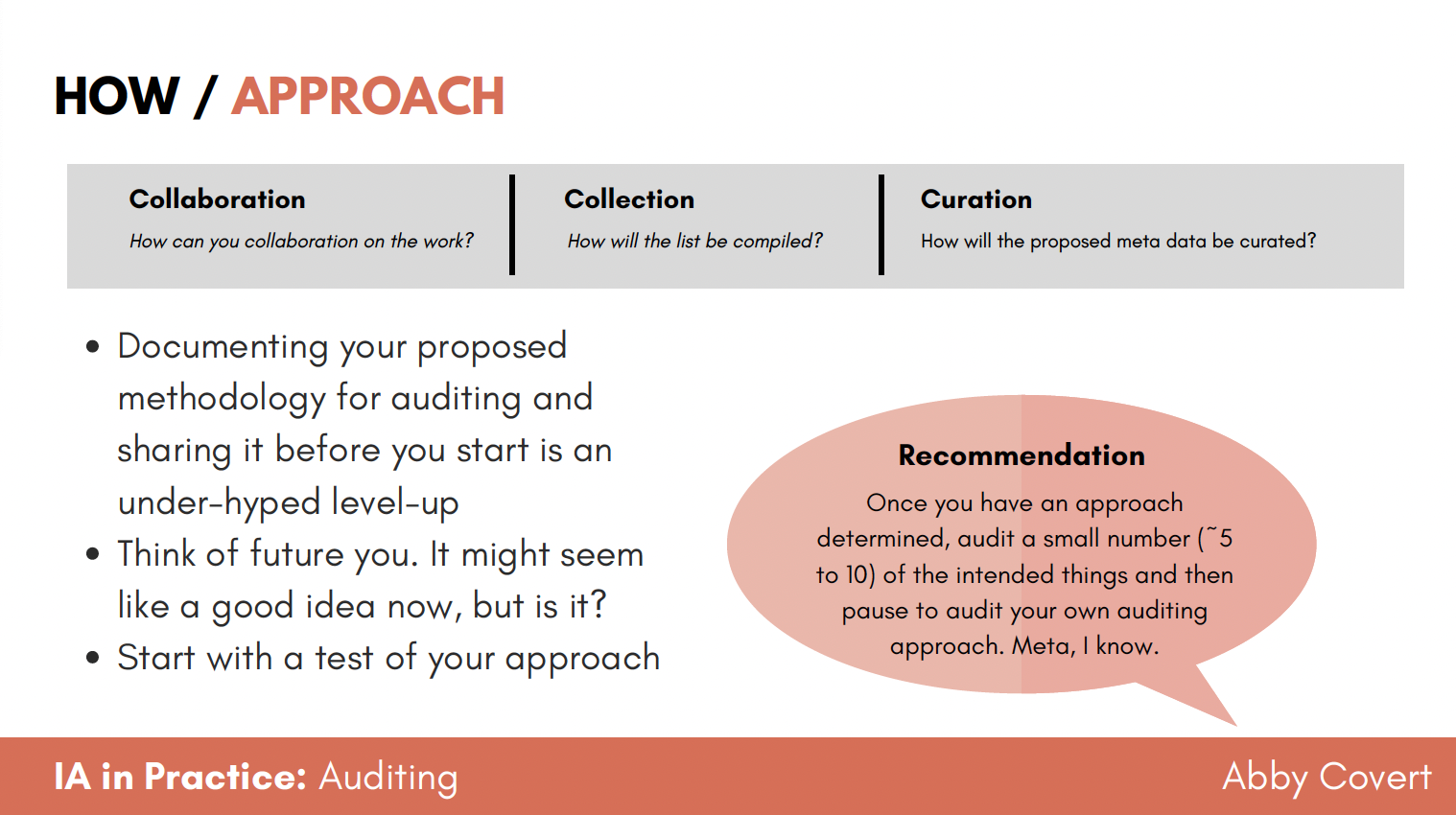 "An audit without a clear intention is just an exercise in procrastination. This course is about making sure you know why you're doing the work before you do it, so you can actually finish it." - Abby Covert